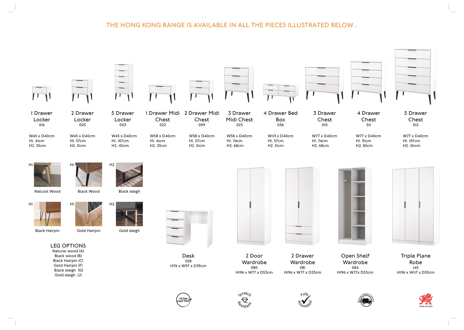 The HongKong Bedroom Range combines modern elegance with practical everyday function, bringing a sleek, contemporary look to your home. Designed with clean lines and a refined finish, this range offers smart storage and a stylish presence that suits both minimal and modern interiors. Each piece is built with durability in mind, featuring smooth-running drawers, sturdy frames, and easy-clean surfaces that make daily use effortless. With its blend of simplicity and sophistication, the HongKong Range is the perfect choice for anyone seeking a fresh, modern bedroom upgrade.