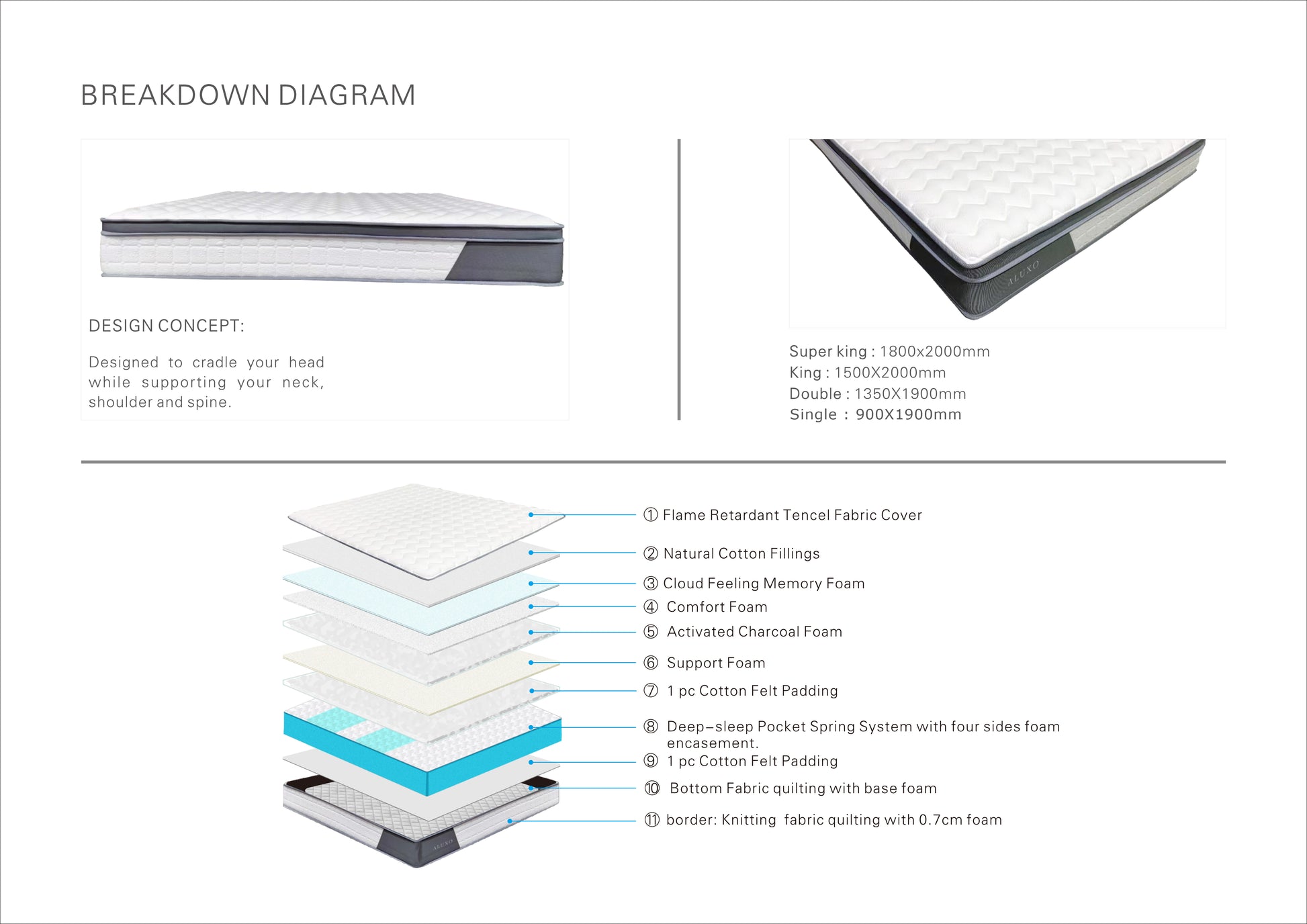 * Luxurious comfort layers for a soft yet supportive sleep surface